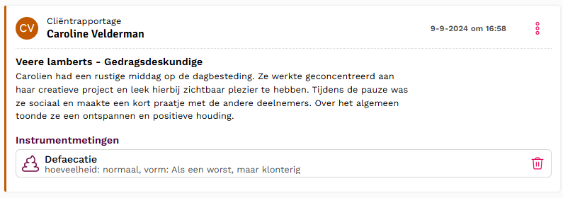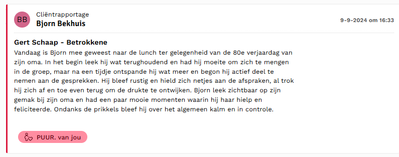 Is de kantlijn geel gekleurd? Dan is de rapportage van een zorgmedewerker vanaf een woongroep en- of dagbesteding.