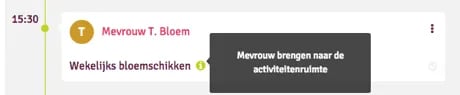Er zijn ook afspraken die belangrijk zijn om een fijne dag te hebben. Dit zijn persoonlijke afspraken; bijv. meedoen met de zangochtend en daarvoor meelopen naar de centrale hal. Het is erg fijn wanneer we samen deze afspraken kunnen uitvoeren. Om te laten weten dat je deze afspraak hebt uitgevoerd kun je de afspraak 'afvinken'. Gebruik hiervoor het grijze vinkje in de rechter onderhoek van de afspraak.