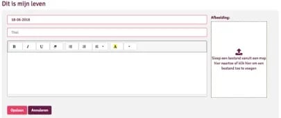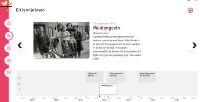 In het tabje 'Dit is mijn leven' kun je in de vorm van een tijdlijn de meest belangrijke gebeurtenissen en herinneringen over je leven of over het leven van degene voor wie je zorgt, invullen: