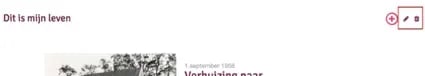 Gebeurtenissen op de tijdlijn die je zelf hebt toegevoegd, kun je bewerken of verwijderen. Dit doe je door op het pennetje of het prullenbakje te klikken.