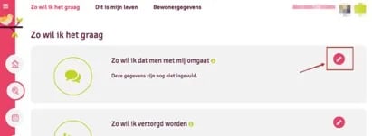 Nadat je een onderdeel hebt ingevuld, kun je nadien altijd een wijziging doorvoeren of een toevoeging doen. Gebruik hiervoor opnieuw 'het pennetje' aan de rechterzijde: