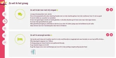 Persoonlijke afspraken zijn afspraken die helpend zijn om jou of de persoon van wie je mantelzorger bent een fijne dag te bezorgen. Het is voor de zorgverleners belangrijk om hier op bepaalde momenten aan herinnerd te worden.