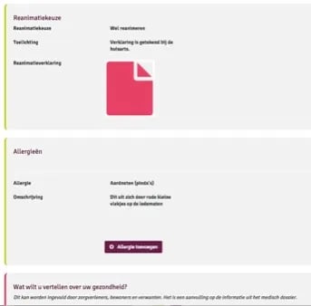 Bij het onderdeel 'Medisch' staan de medische gegevens. Denk hierbij aan een wel/niet reanimatieverklaring of mogelijke allergieën.